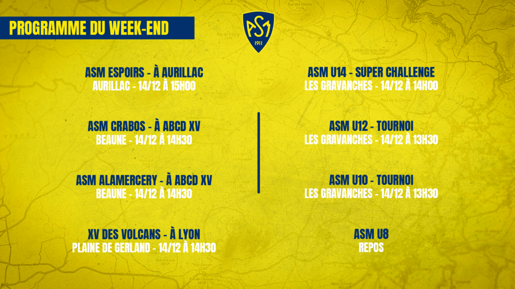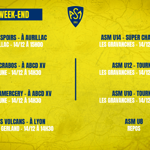 • L’ASM se déplace à Aurillac – Samedi 14 décembre 2024 à 15H00 (Stade à définir)