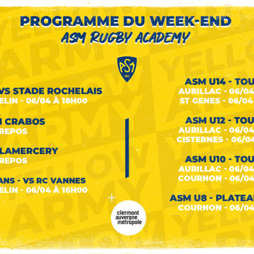 • ASM vs RC Vannes – samedi 6 avril 2024, à 16H00 (Stade Marcel Michelin)