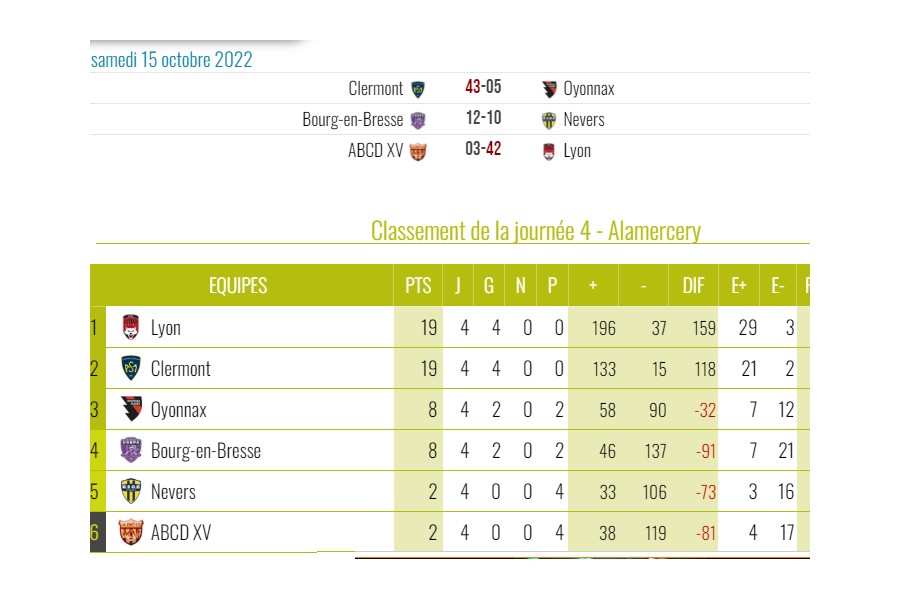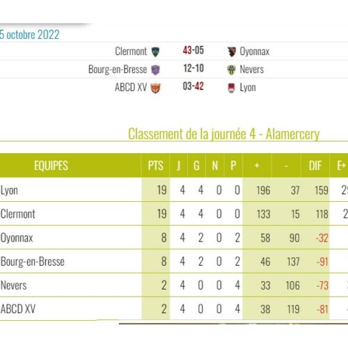 Cadets Alamercery ASM – Oyonnax 43 – 5 avec le point du bonus