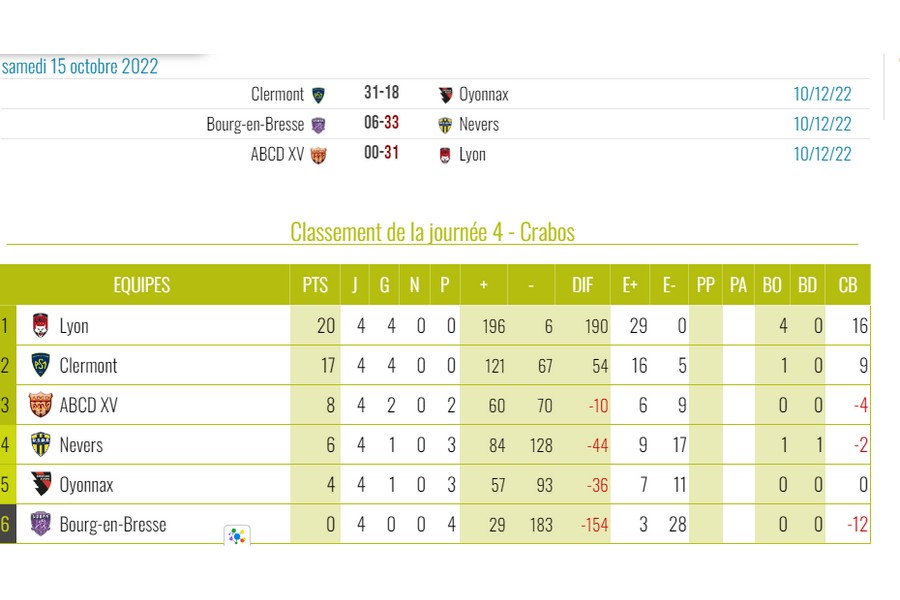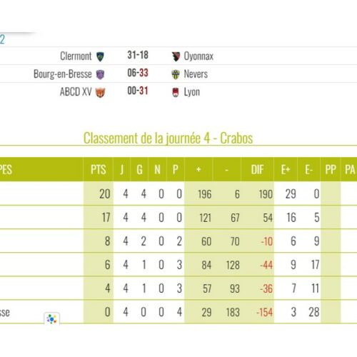 Nos Crabos se sont imposés 31 à 18 dans une rencontre très disputée face à une équipe de Oyonnax qui n’a rien lâché et qui hélas nous a privé du point du bonus offensif en fin de partie.