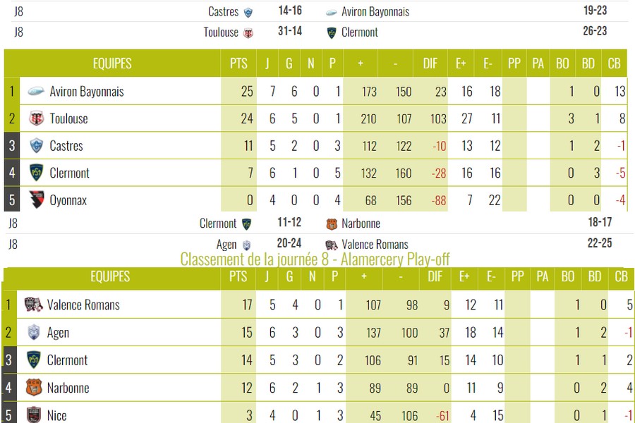 Les Alamercery aux Gravanches se sont inclinés de justesse face à Narbonne d’un petit point 11 à 12, alors qu’ils avaient gagné à l’aller 18 à 17.