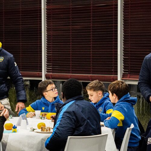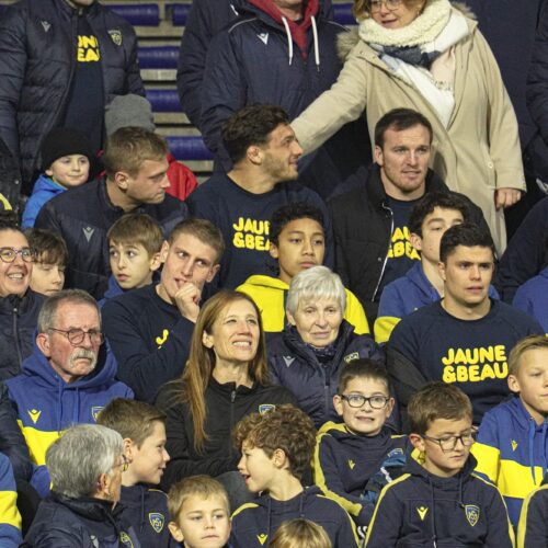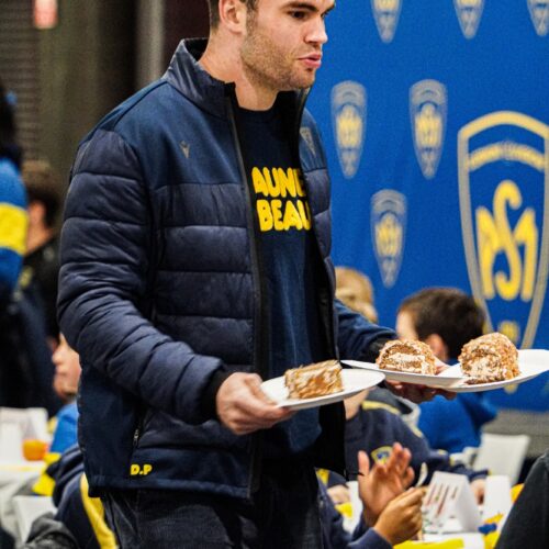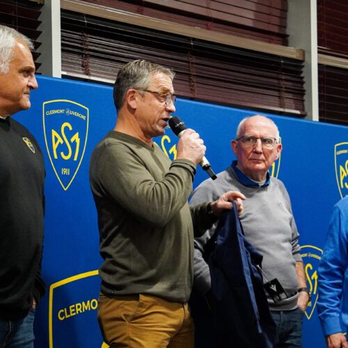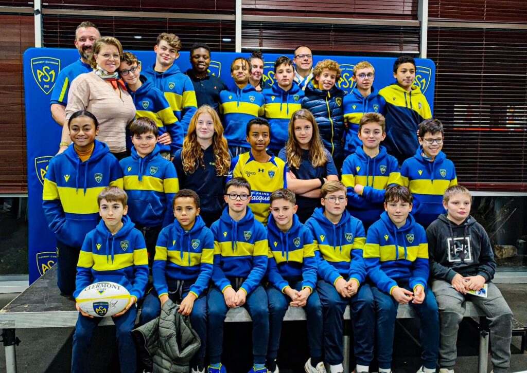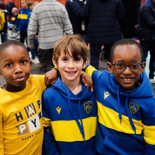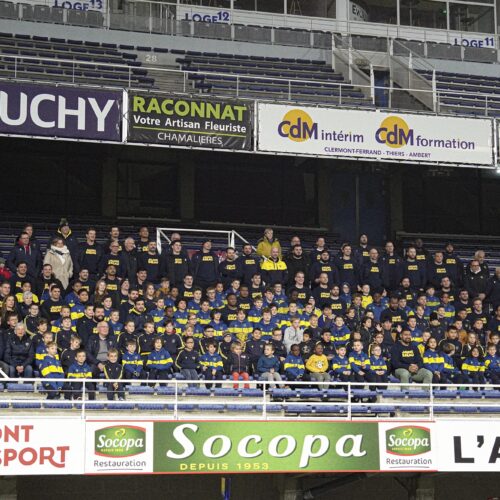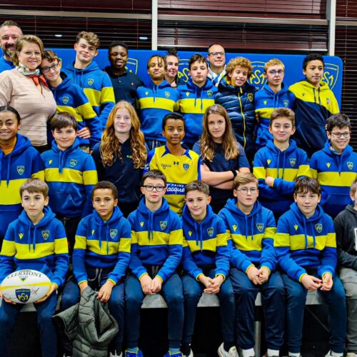 La bûche de l’Ecole de Rugby est une soirée phare dans la vie du club asémiste, un adage qui s’est encore vérifié ce mardi soir au stade Marcel Michelin. Conviés à partir de 17H30 sur le parvis de l’enceinte jaune et bleu, la relève montferrandaise eu la surprise de voir l’entièreté de l’effectif professionnel du club arriver dans le salon Open du stade, puis venir poser avec eux pour la photo qui immortalisera la soirée.