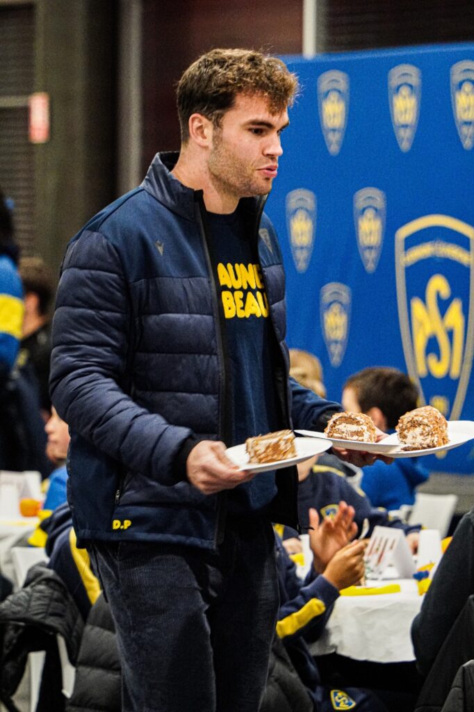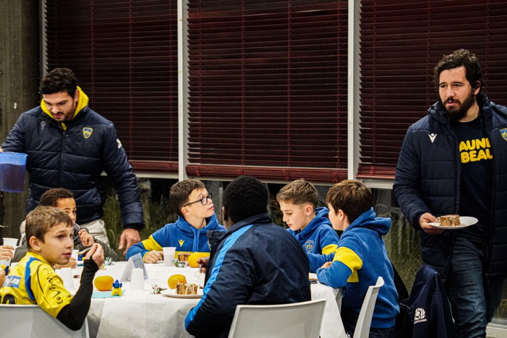 Après plusieurs années d’absences, dues à la situation sanitaire, la bûche de l’Ecole de Rugby jaune et bleu était de retour ce mardi au stade Marcel Michelin. Une soirée où tous nos jeunes montferrandais étaient conviés à manger un morceau de bûche, servi par les joueurs professionnels du club.