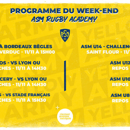 • ASM vs Lyon OU – Samedi 11 novembre à 14H30 (Stade des Gravanches)