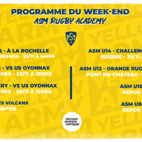 • Stade Rochelais vs ASM – Samedi 25 novembre à 14H00 (Plaine Colette Besson)