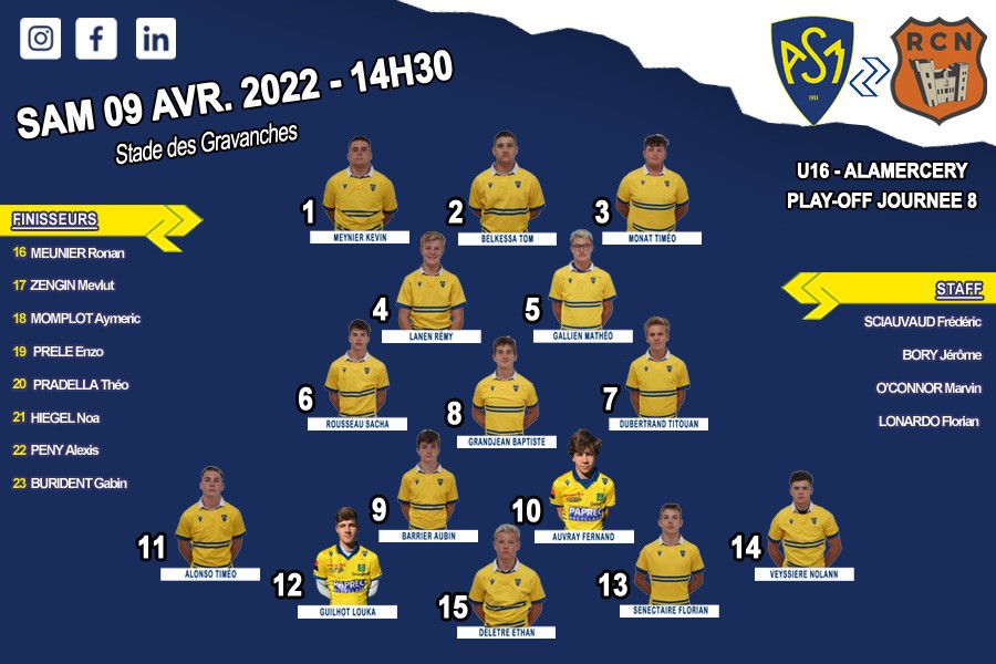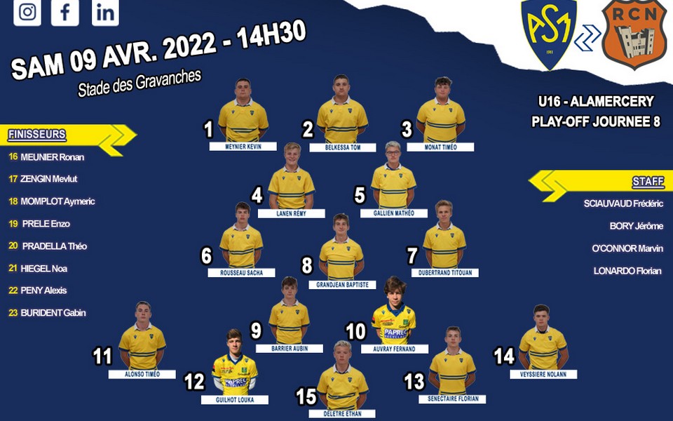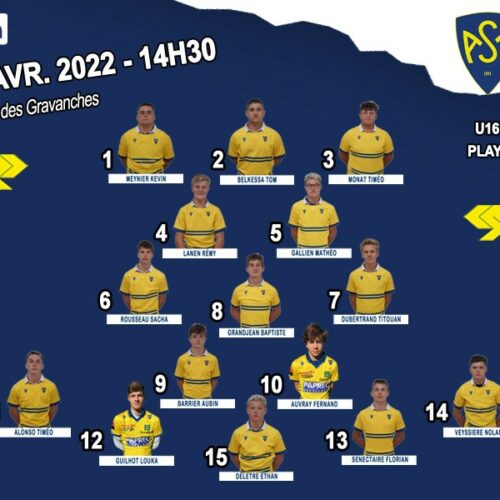 Les Cadets M16 recevront Narbonne dans le cadre du championnat Alamercery, Samedi 9 Avril aux gravanches, à 14H30.