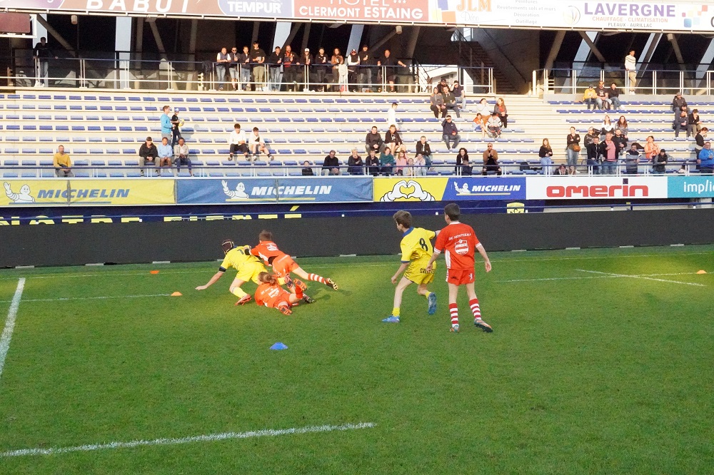Après avoir pu assister au match remporté par les professionnels de l’ASMCA, les jeunes M12 sont descendus à leur tour sur la pelouse hybride du stade Marcel Michelin. Le tournoi, arbitré par les M14 montferrandais, a débuté dès 19H30, sous le regard d’un bon millier de spectateurs, restés en tribune pour assister à des rencontres d’un agréable niveau.