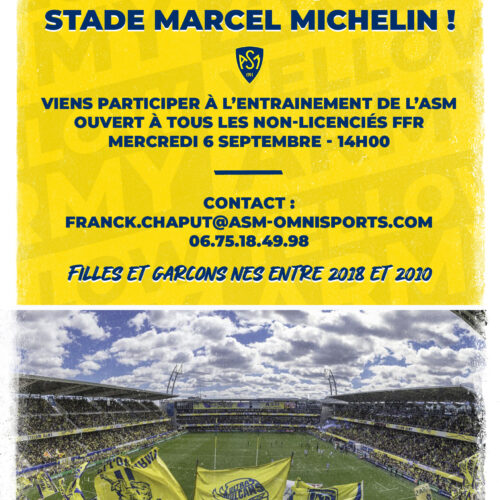 C’est une première pour les plus jeunes joueurs de l’ASM, en cette année si particulière de coupe du monde de rugby en France. Ce mercredi 6 septembre à partir de 14H00, près de 120 joueurs fouleront les pelouses du stade Marcel Michelin et du Centre d’entrainement du groupe professionnel, pour la rentrée sportive de l’école de rugby.