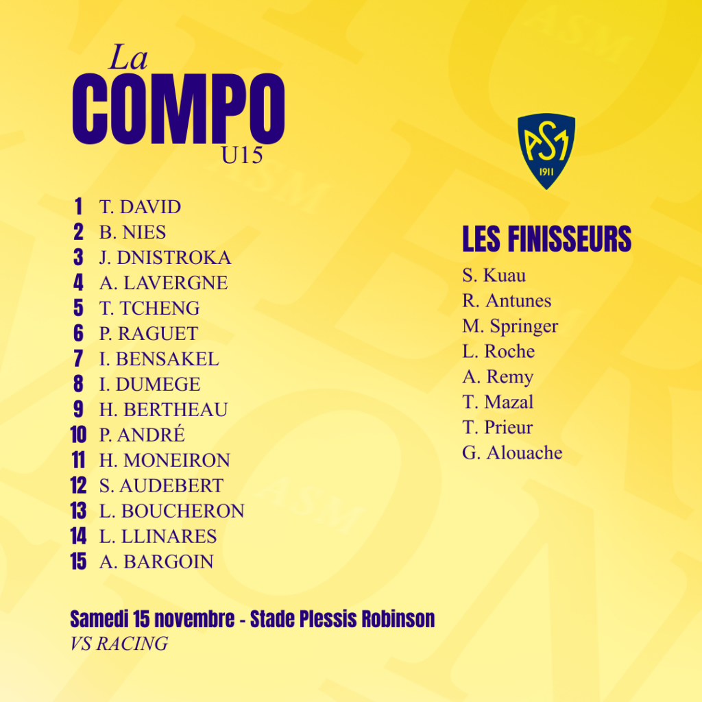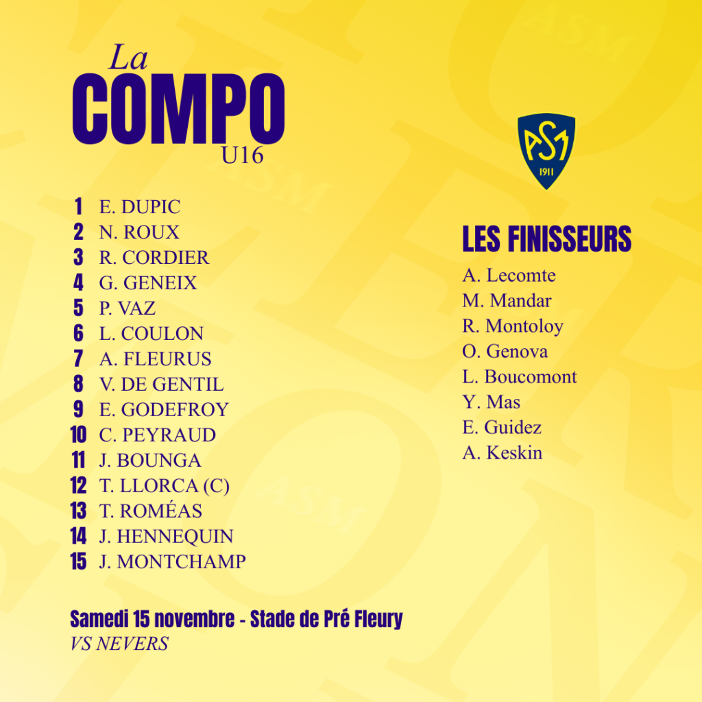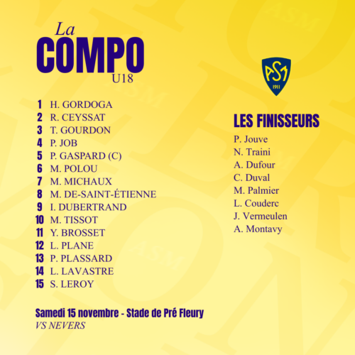 Nos jeunes sont prêts à tout donner sur le terrain ! Découvrez ci-dessous les compositions complètes de nos équipes U16, U17 et U18 pour les rencontres de ce week-end.