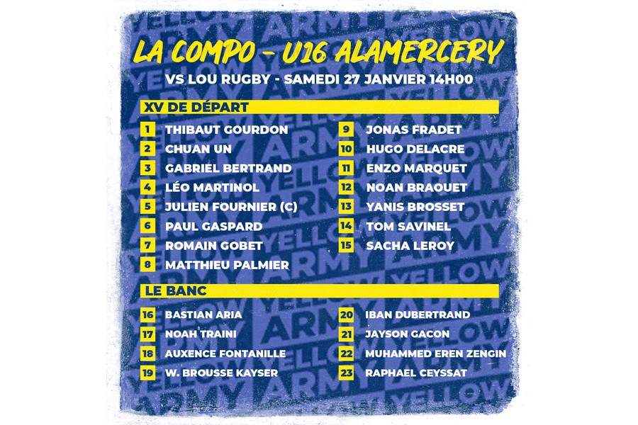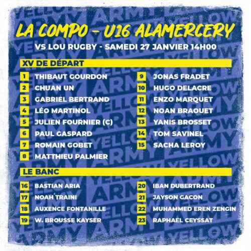 Nos jeunes, premiers de groupe et invaincus, se déplacent à Lyon ce samedi à la plaine de Gerland pour y rencontrer le LOU dont les deux équipes occupent la seconde place.