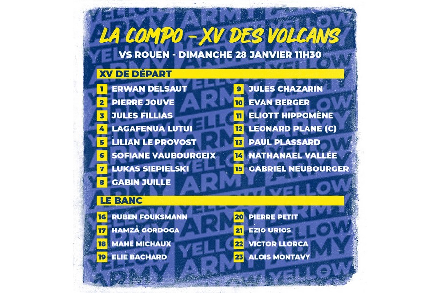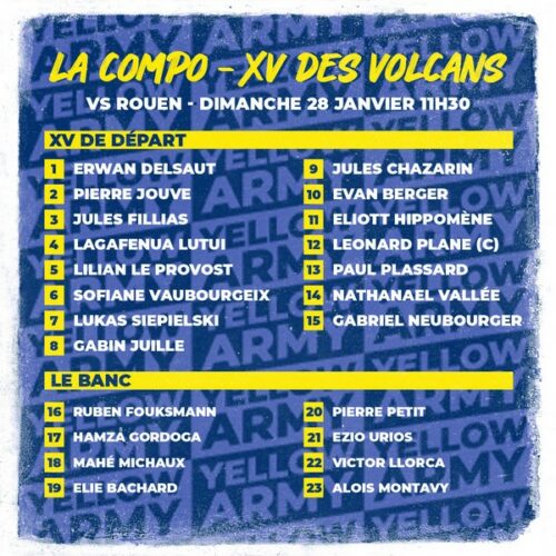 Rouen Normandie Rugby vs XV des Volcans – Dimanche 28 janvier à 11H30 (Stade Jean Mermoz)