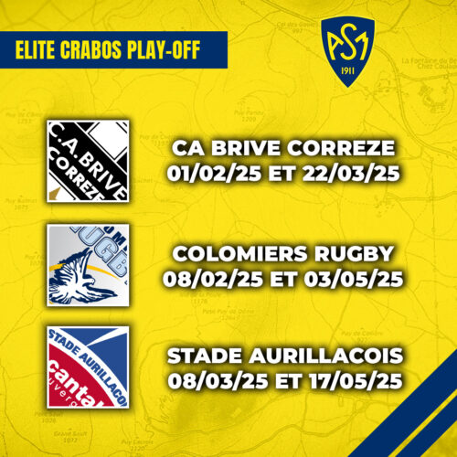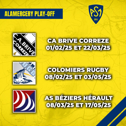 - ASM vs Stade Aurillacois : le samedi 8 mars 2025 (retour le 17 mai 2025)