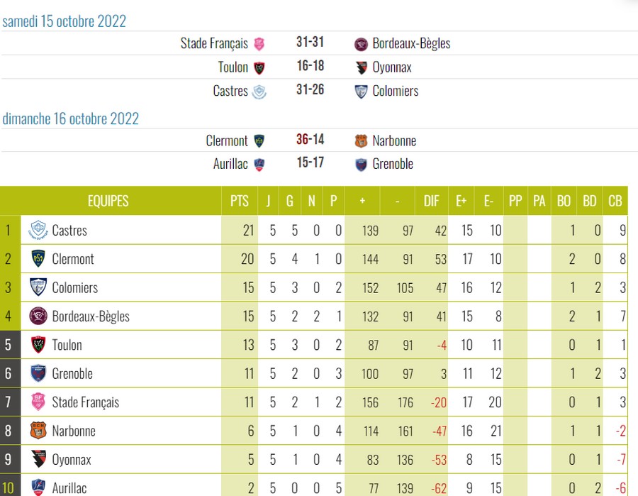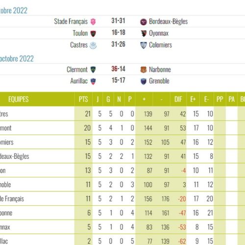 Les cinq points obtenus nous permettent d’être deuxième au classement à un petit point de Castres.