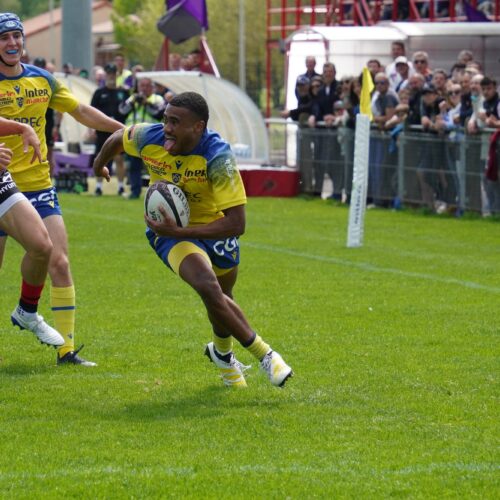 C’est d’ailleurs par l’intermédiaire de plusieurs relais entre avants, dans la ligne d’avantage adverse, que la première brèche du match fut créée. Par l’intermédiaire de Cyriac Guilly, puis du deuxième ligne Enzo Wuilque, l’ASM arrivait à 10 mètres de la ligne adverse. Matéo Lajous extirpait rapidement le ballon pour transmettre à sa ligne d’arrière, jusqu’à Mesake Kurisaru, qui n’avait plus qu’à entrer dans l’en-but pour aplatir (7-0).