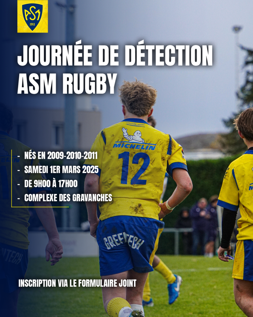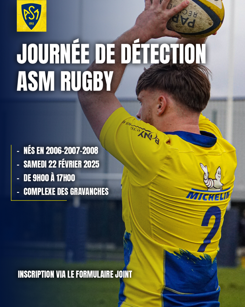 Cette saison encore, le club jaune et bleu propose à tous les jeunes joueurs de rugby qui souhaitent intégrer les effectifs montferrandais pour la saison 2025/2026, deux samedis entiers de détection. Au programme : questionnaire, postures, mesures de vitesse, et matchs, le tout encadré par les différents staffs de l’ASM Rugby.