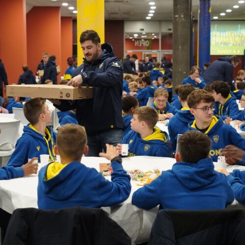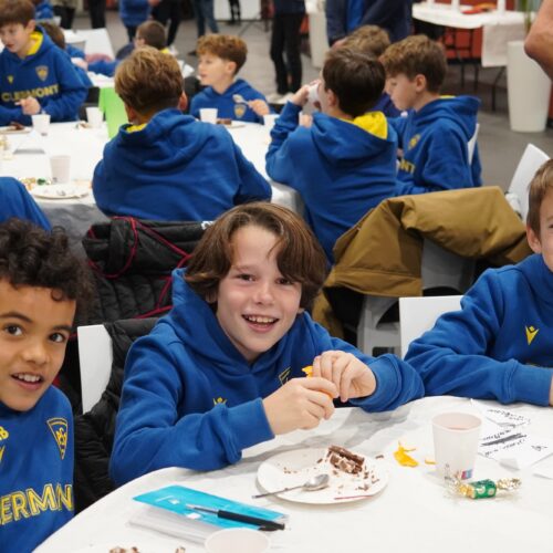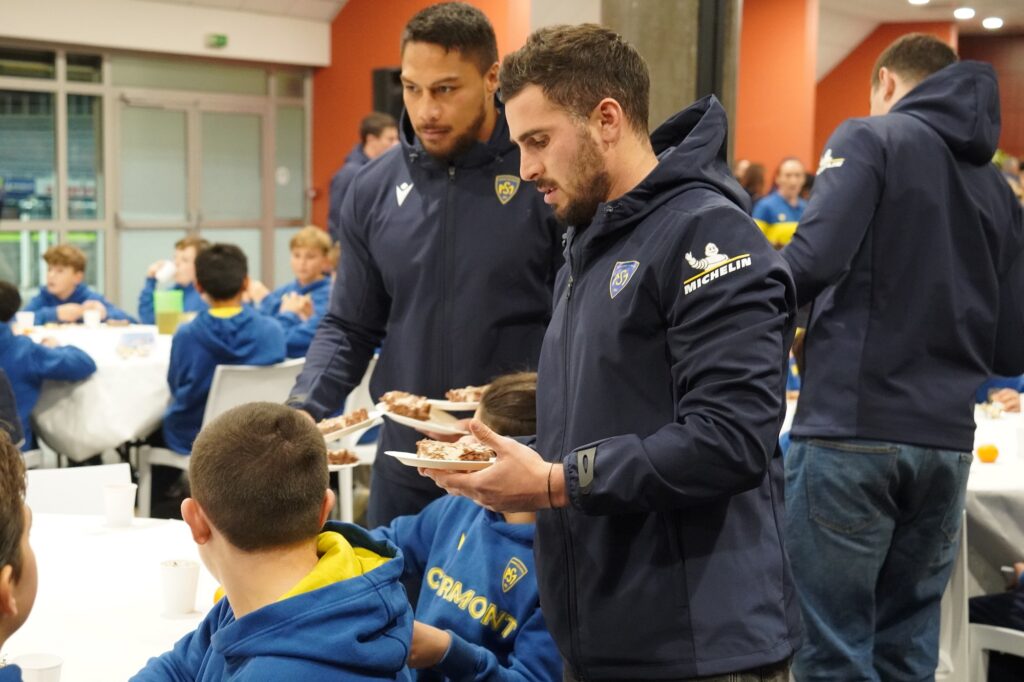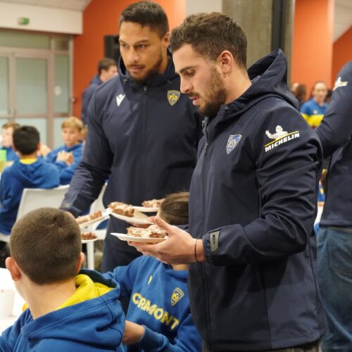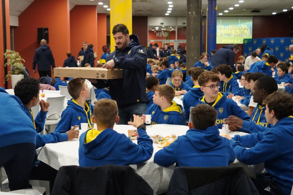 Ce fut une sortie d’école un peu particulière vécue par les joueuses et joueurs de l’école de rugby de l’ASM ce mardi soir. Le rendez-vous était donné à 17H30 dans le salon Open du stade Marcel Michelin, pour plus de 120 jeunes pousses montferrandaises. Répartis autour des tables installées par les dirigeants bénévoles du club, les enfants furent rejoints dans un deuxième temps par l’intégralité des joueurs professionnels de l’ASM Clermont Auvergne, ainsi que son staff sportif.
