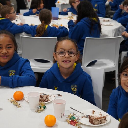 L’occasion d’immortaliser le moment par une photo prise dans les tribunes du stade, avant de voir les joueurs s’occuper du service de la bûche à l’ensemble de la future génération ASMiste !
