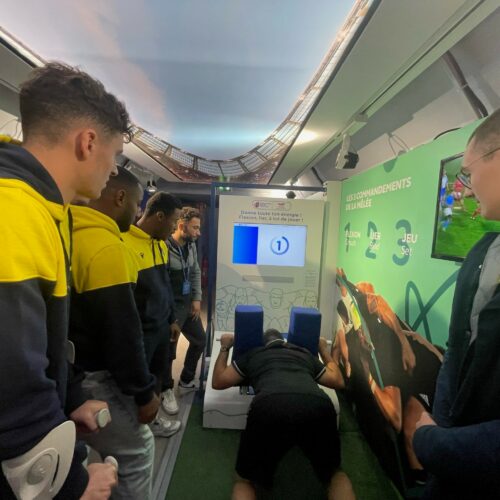 Au programme de la visite, plusieurs activités d’acculturation à l’histoire de la coupe du monde, tel qu’un atelier vidéo retraçant les plus beaux essais inscrits dans la compétition depuis sa création. Plusieurs joueurs se sont essayés à une immersion virtuelle, leur permettant de simuler une entrée dans un stade plein. Enfin, le directeur du Centre de Formation Adel Fellah a fait une démonstration à la machine à mêlée, environnement que connait bien l’ancien talonneur de métier.