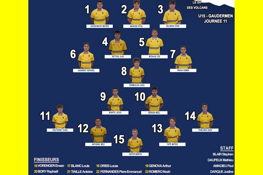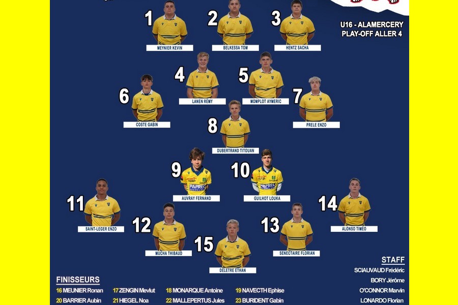 Les Cadets U15 recevront ce samedi le LOU à 14h30, nos U16 recevront Valence aussi à 14h30.