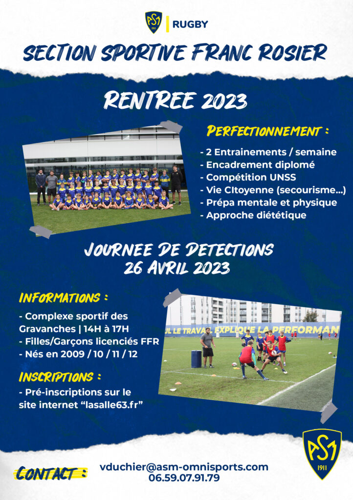 La section sportive rugby du collège Franc Rosier fut inaugurée en 2007, en partenariat avec l’ASM Rugby. Une collaboration qui implique plus d’entrainements sportifs pour les jeunes joueurs membres de la section, mais aussi un suivi pédagogique qui ne se résume pas qu’à la pratique du rugby.