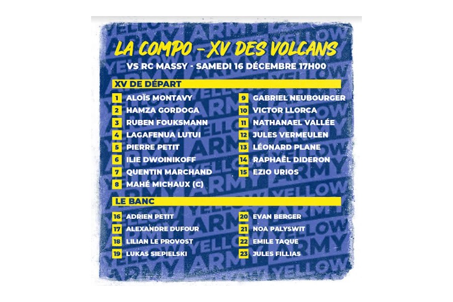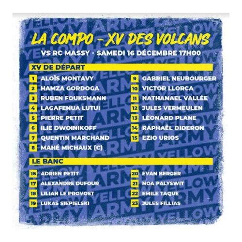 «Après 5 matchs les U15 gauderman sont à 3 victoires pour 2 défaites. 5ème à un point du 4ème qui n’est autre que Massy. Mais outre le résultat c’est bien le contenu et l’état d’esprit que le staff va scruter. La défaite à Vannes dans des conditions « bretonnes » et le manque de caractère ne reflète pas la qualité de ce groupe qui aura à cœur de se rattraper. Peu importe le score, le XV des volcans va chercher un état d’esprit et veut se rassurer sur la capacité à répondre dans le combat.