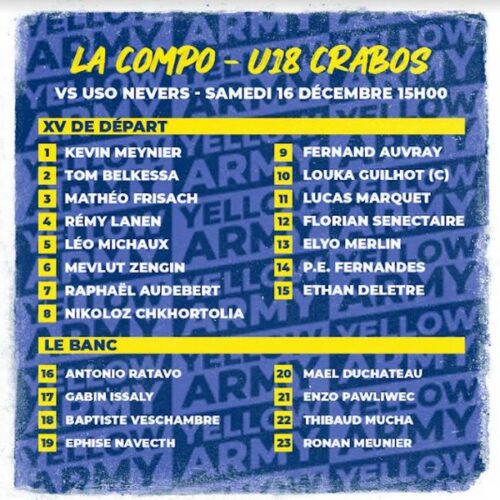 Nos Crabos et nos Alamercery reçoivent l’USO Nevers à 15h.