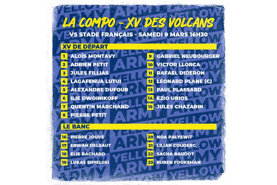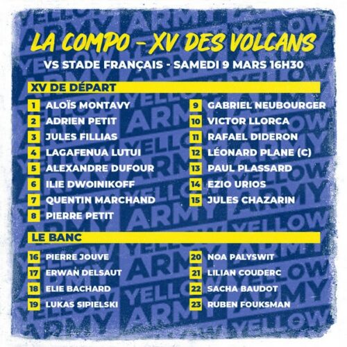Stade Français – XV des Volcans – Samedi 9 Mars 2024 à 16H30