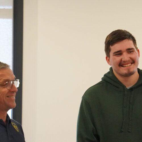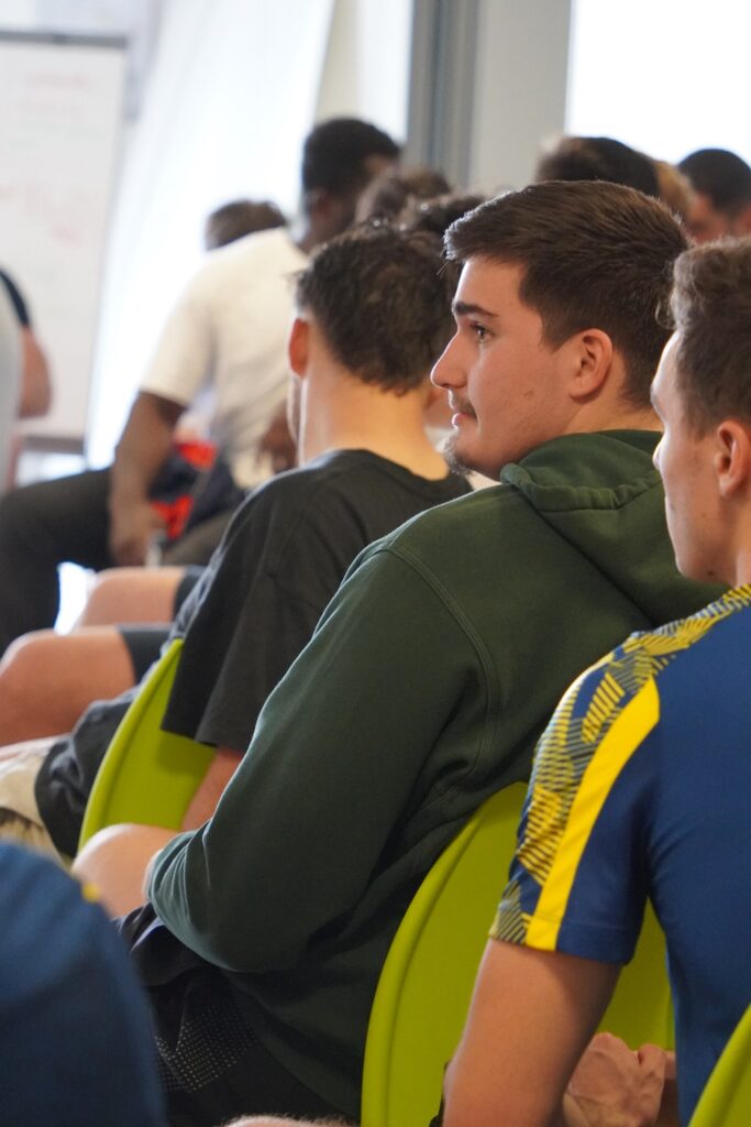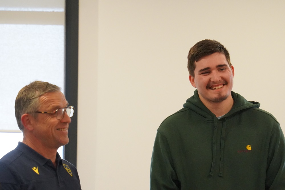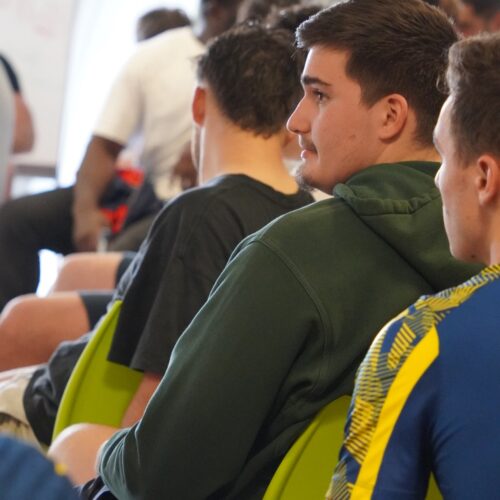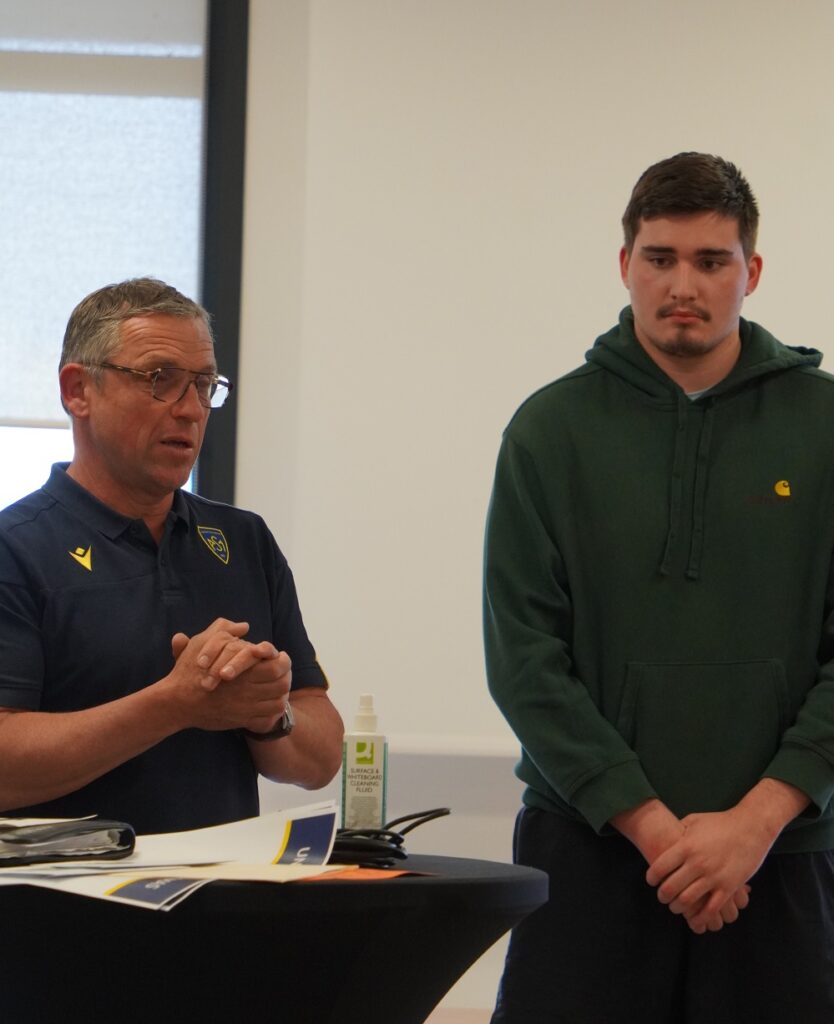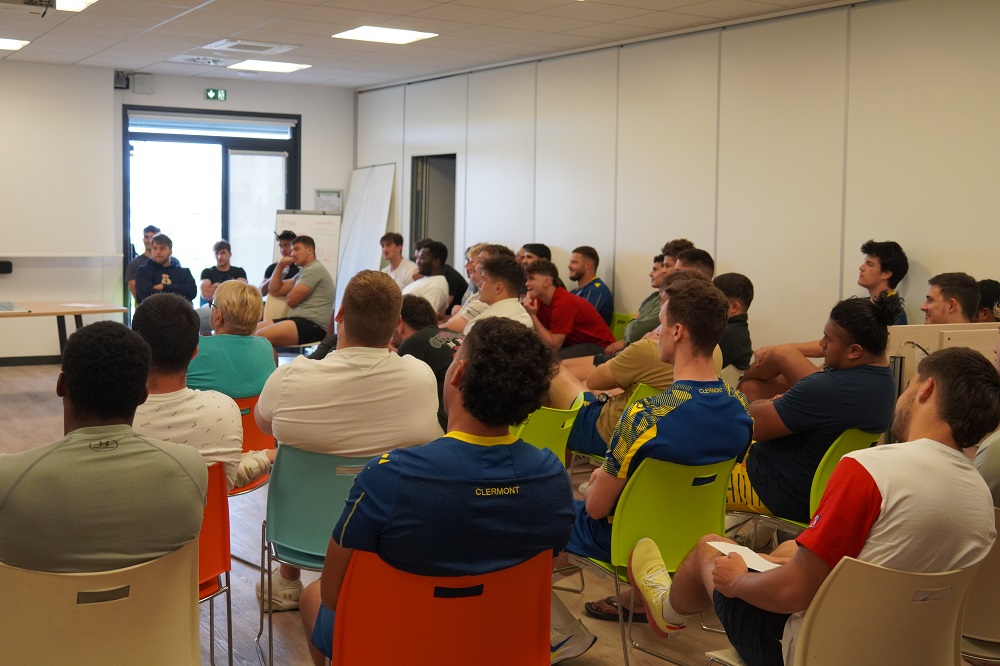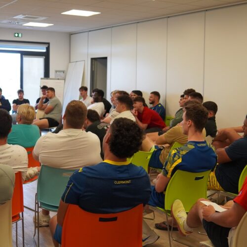 Ce fut un moment d’émotion lorsque le grand bonhomme qu’est Thomas a franchi la porte de la salle de réunion du Centre de Formation de l’ASM. Un grand sourire aux lèvres, c’est sous les applaudissements nourris de toutes les personnes présentes qu’il est allé s’asseoir tout au milieu des autres joueurs, symbole de sa discrétion. Le groupe Espoirs au complet l’attendait, impatient de voir les progrès effectués par Thomas. Un groupe qui s’était mobilisé, pour vendre au mieux les tickets de bourriche du stade. Avec un résultat exceptionnel, et un record de recettes battu sur la saison. Ce résultat aura permis à l’AJR de remettre un chèque de 5500 € à Thomas, somme non-négligeable pour son projet.