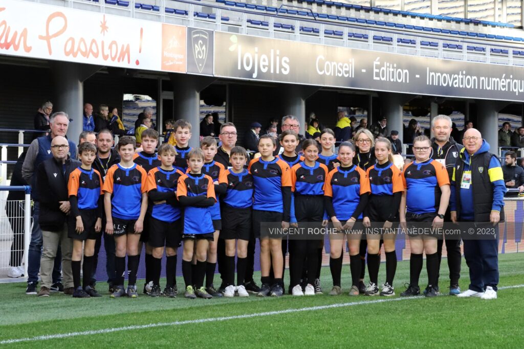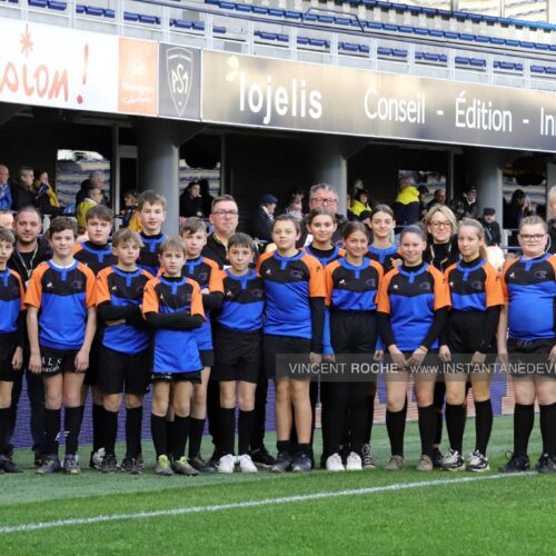 Pour l’occasion, les U14 ont même porté les couleurs orange et bleu de leur équipe jusque sur la pelouse de l’enceinte montferrandaise, puisqu’ils étaient les ramasseurs de balles de la rencontre, pilotés par nos dirigeants en charge de cette mission depuis de nombreuses années, Jean-Pierre Aubert et Patrick Geneix.