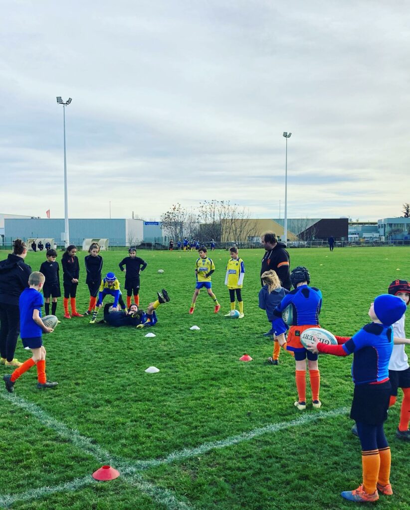Direction les terrains ensuite, pour les catégories U8, U10, et U12, pour un entrainement commun d’1H30. Moment de découverte pour les enfants, tous mélangés pour effectuer les ateliers programmés par les coachs des deux clubs.