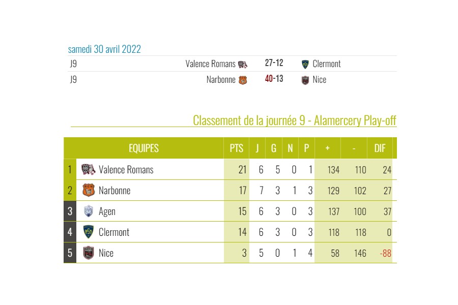 Mais nos Alamercery eux se sont inclinés à Valence 12 à 27.