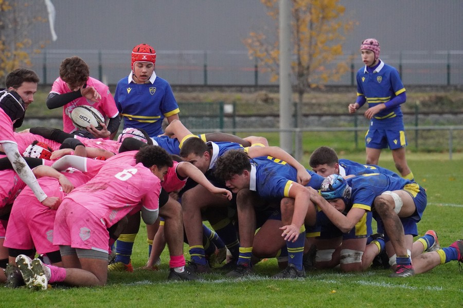 Nos cadets se sont imposés indiscutablement dans un match très ouvert avec la bagatelle de 8 essais inscrits, 5 pour nos joueurs et 3 pour les Lyonnais.