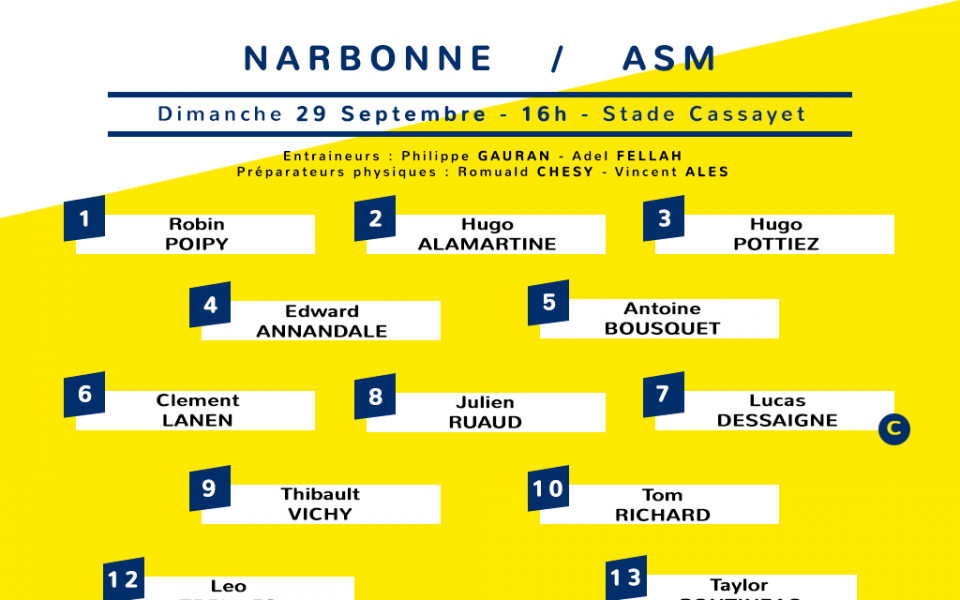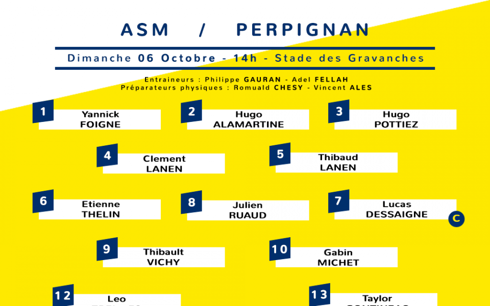 Le duo Fellah-Gauran livre sa composition pour affronter l’USA Perpignan, dimanche 6 octobre à 14h, Stade des Gravanches. Image : MC/ASM Omnisports Rugby [...]