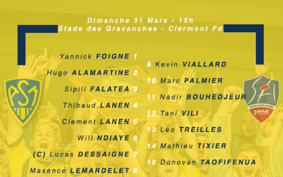 Le duo Fellah-Gauran livre la composition des Espoirs, pour recevoir le Stade Aurillacois, dimanche 31 mars à 15h, Stade des Gravanches. Venez nombreux les soutenir. L’entrée est gratuite. Après la re [...]