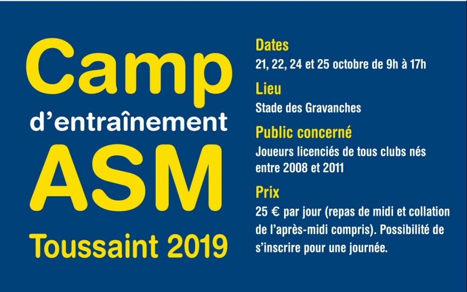 Dans 7 semaines, les vacances de la Toussaint pointent le bout de leur nez. Vos enfants déjà licenciés en clubs pourront pratiquer le rugby à l’ASM ! Les 21, 22, 24 et 25 octobre, la Section Rugby de [...]