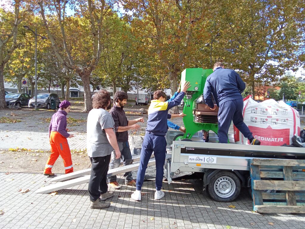 Nogozone, association investie dans le contrat de ville sur le quartier a fait appel à l’association Terre de Combronde qui a un atelier mobile Bois-Terre-Paille pour le travail de la terre crue, projet lauréat du budget écologique et citoyen du conseil départemental du Puy de Dôme.