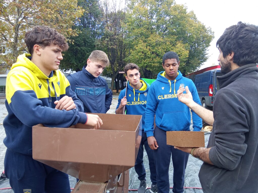Le dimanche 5 novembre 2023, 4 jeunes volontaires de la section rugby ont travaillé main dans la main avec les associations Nogozone, Terre de Combronde, et les habitants du quartier de La Gauthière afin de réaliser des briques en terre crue pour le futur four partagé du quartier. Ce four sera mis à disposition des habitants et associations du quartier afin de partager des temps de vie commune.