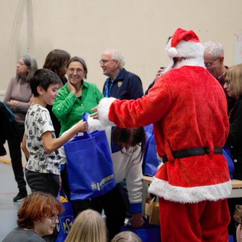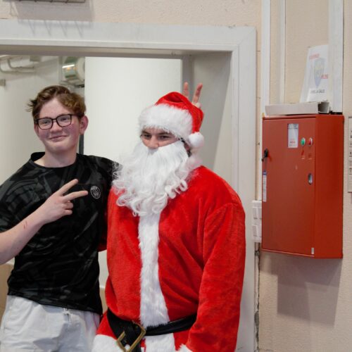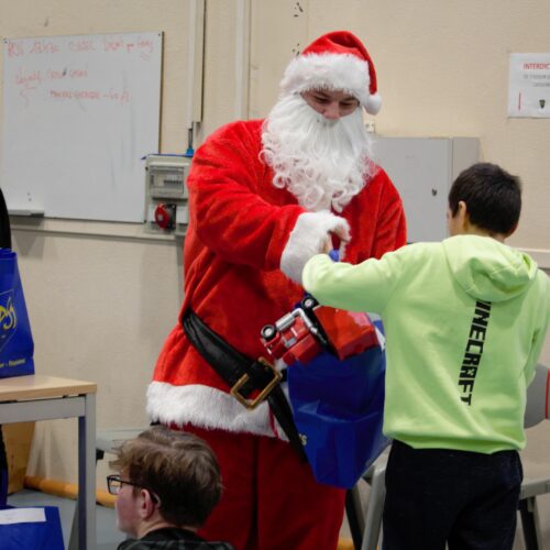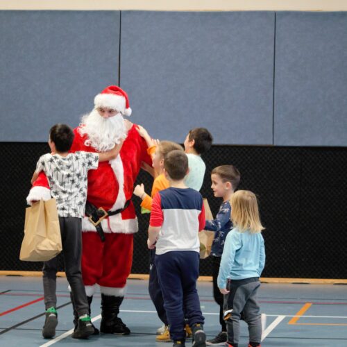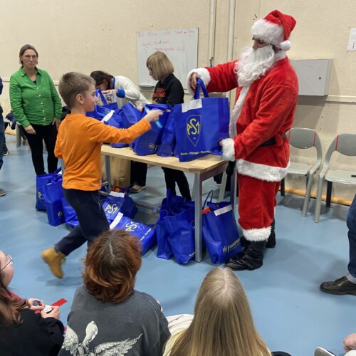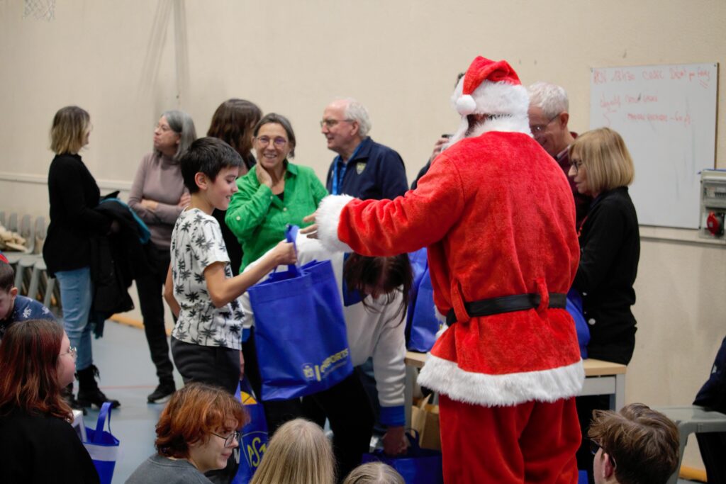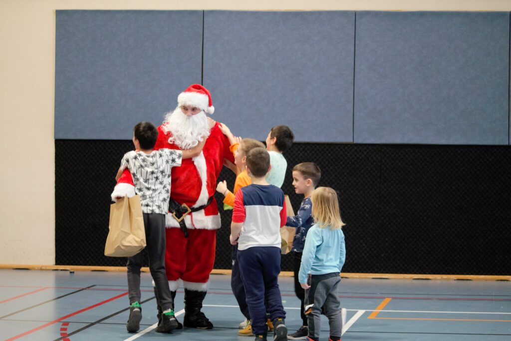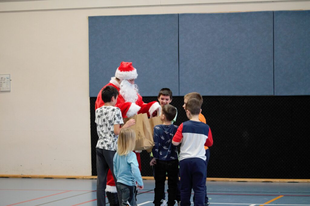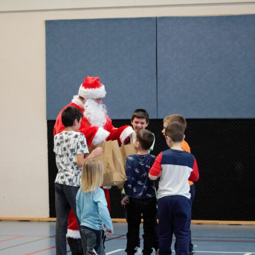 Enfin, pour récompenser leurs efforts de l’après-midi, le père Noël est venu à leur rencontre, chargé de cadeaux !