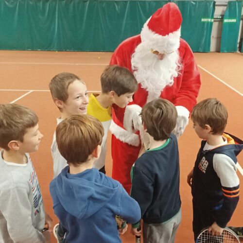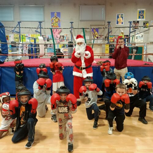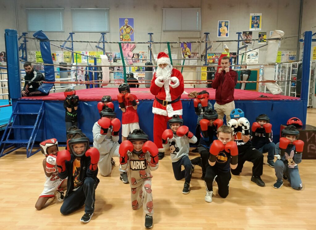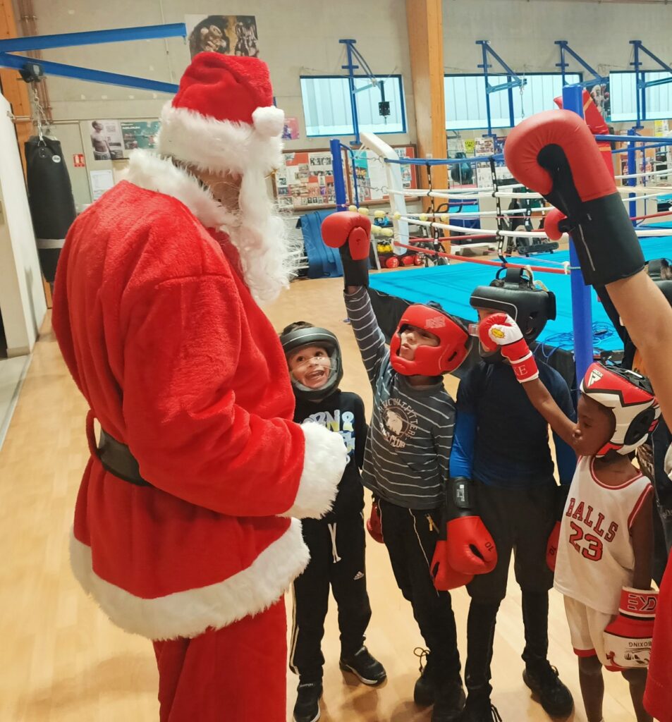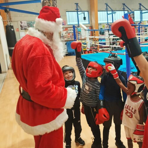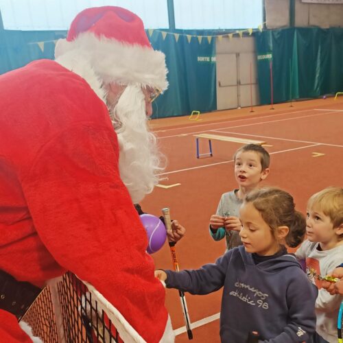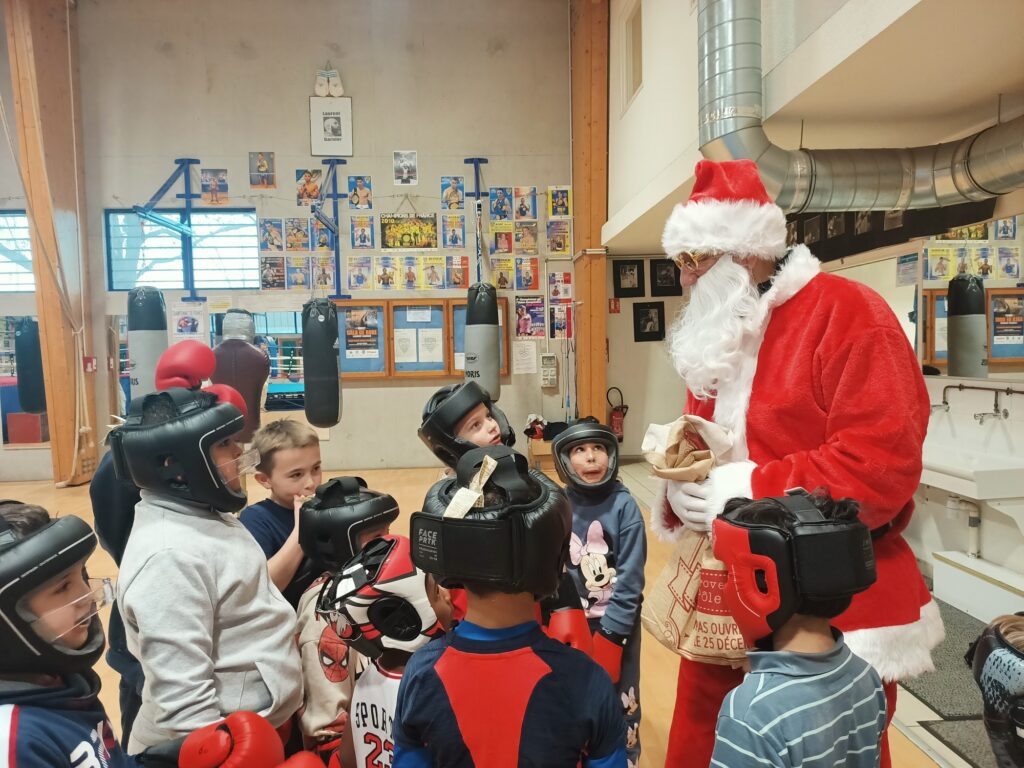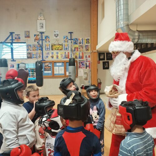 Le Père Noël a commencé par saluer les équipes du club, puis, il a sauté quelques haies avec les enfants de l’athlétisme. Il est allé jouer avec sa raquette à l’école de tennis et a également pris un cours de boxe et de lutte !