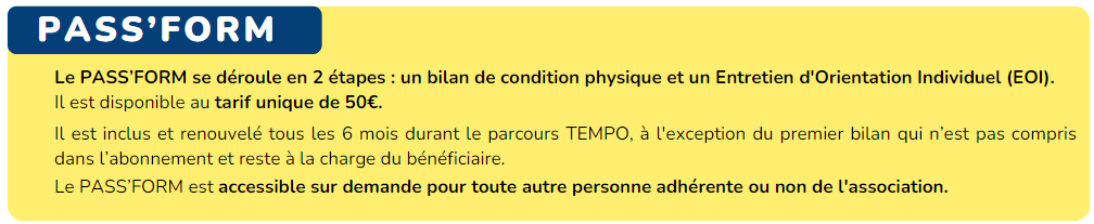 • Sports Santé : Tennis, Tennis de Table, Rugby, Foot en marchant, Basket, Nage Forme Santé, Gym aquatique (intensité modérée)
