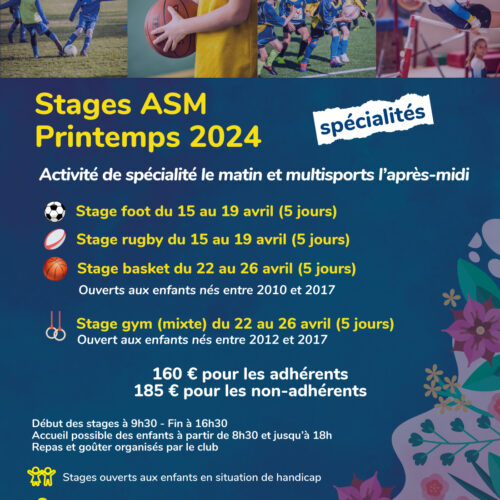 En plus des stages multisports, l’ASM Omnisports propose des stages de spécialités uniques pour approfondir les compétences dans un domaine spécifique. Avec des options telles que le football, le rugby, le basket et la gymnastique, chaque enfant peut choisir la spécialité qui lui correspond le mieux.