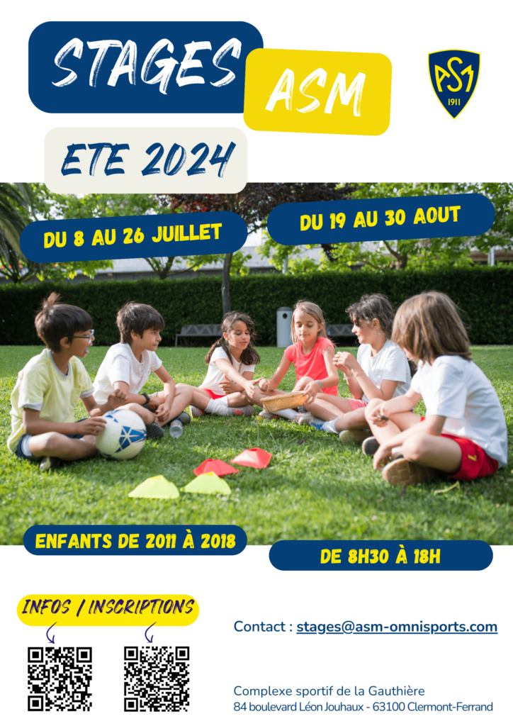 Les stages d’été de l’ASM sont ouverts à tous les enfants, qu’ils soient adhérents de l’ASM ou non, et ce, peu importe leur niveau. De 2011 à 2018, tous sont les bienvenus pour une semaine de découvertes et de passion sportive. Les formules débutent à 65€ pour 2 jours et 160€ pour 5 jours.