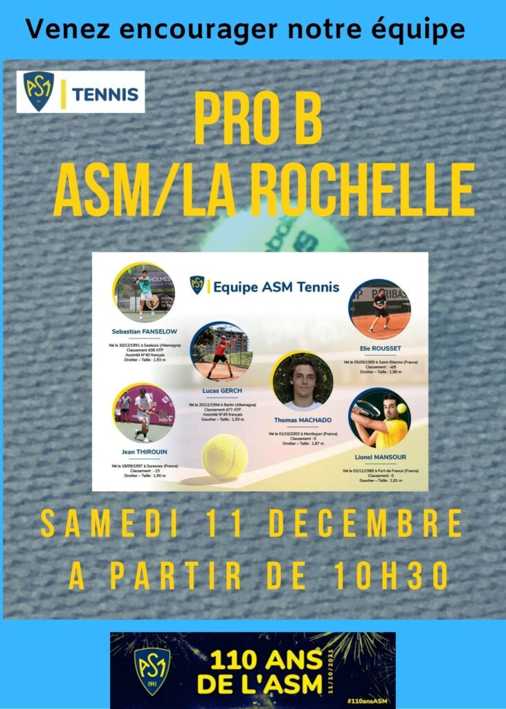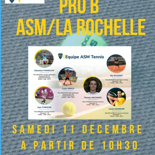 Ce samedi 11 décembre, l’équipe Pro B de l’ASM Tennis reçoit La Rochelle.