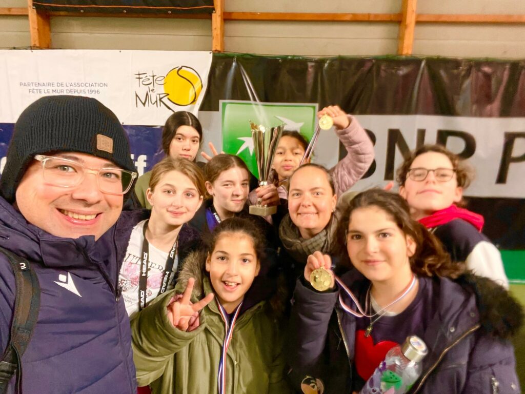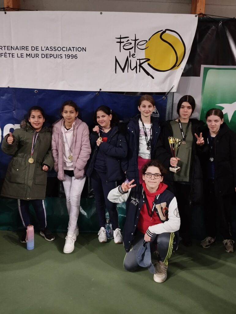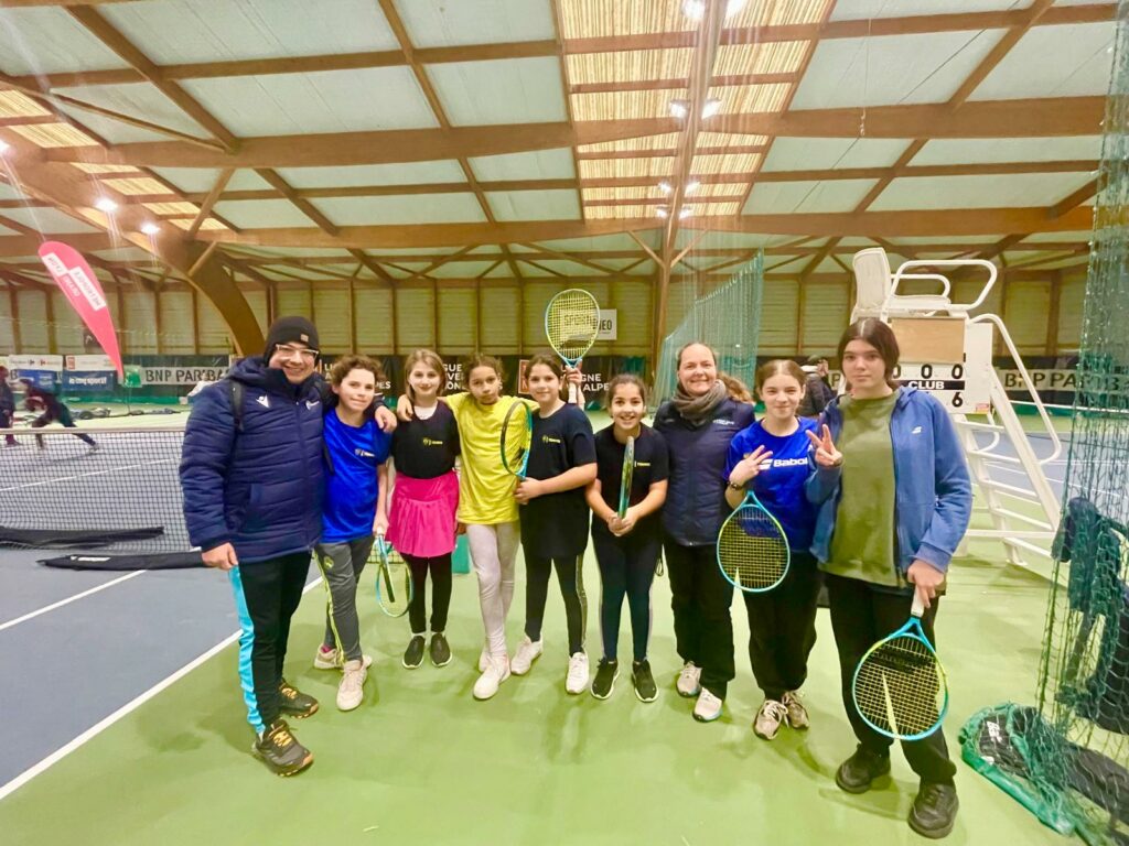 Nous sommes parti avec deux équipes ASM Clermont-Fd. L’équipe 1 était mixte et composée de 4 joueurs/joueuses : Téhmine, Hoani, Zina et Shaïma. L’équipe 2 était 100% féminine avec Lina, Camélia et Tasnime. Nos jeunes ont joué 7 rencontres sur la journée de samedi. Le matin, les résultats ont permi de constituer un tableau multichance avec des têtes de série. L’après-midi, c’était vraiment du sérieux avec l’équipe qui termine première qui se qualifie pour la phase nationale à Roland Garros !