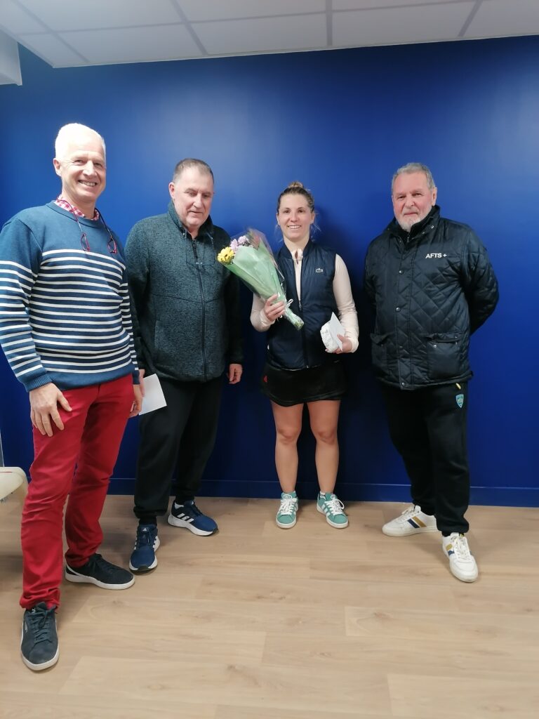 Chez les dames, les favorites se sont retrouvées en finale et le suspens était de mise puisqu’il a fallu attendre le tie-break du 3ème set pour déterminer la lauréate 2025 ! C’est finalement Marie MATTEL classée -15 du club de Ermont ACT (région parisienne) qui s’impose 2/6 6/4 7/6(4) face à la pensionnaire de Villa Primerose, Camille MOGA également classée -15. Nos deux finalistes étaient ravie de l’accueil qu’elles ont reçu au club et ont remercié les bénévoles présents. La finaliste n’était pas si déçue car c’était son tournoi de reprise après une longue interruption pour blessure (ligaments croisés du genou) et elle a pu défendre à fond ses chances sans ressentir de douleurs.