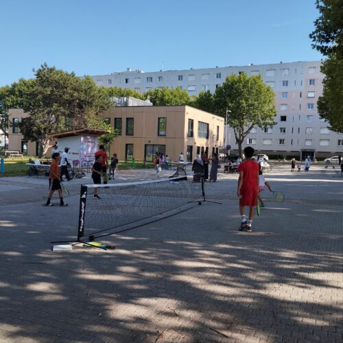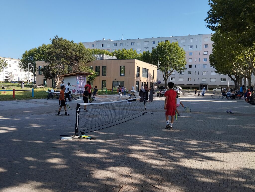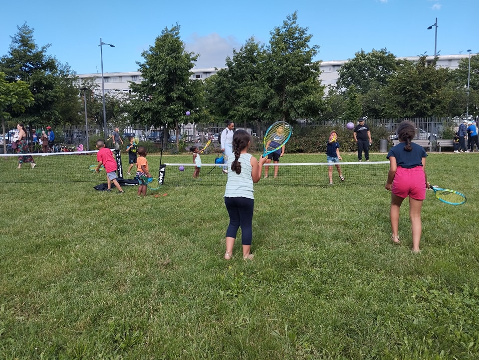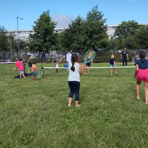 La petite balle jaune ou plutôt le gros ballon violet, était également de sortie lors des animations Quartier d’été dans le quartier des Vergnes et à La Gauthière. Ce sera au total environ 80 jeunes des quartiers qui seront venus tester le tennis au pied des immeubles sur soirées.