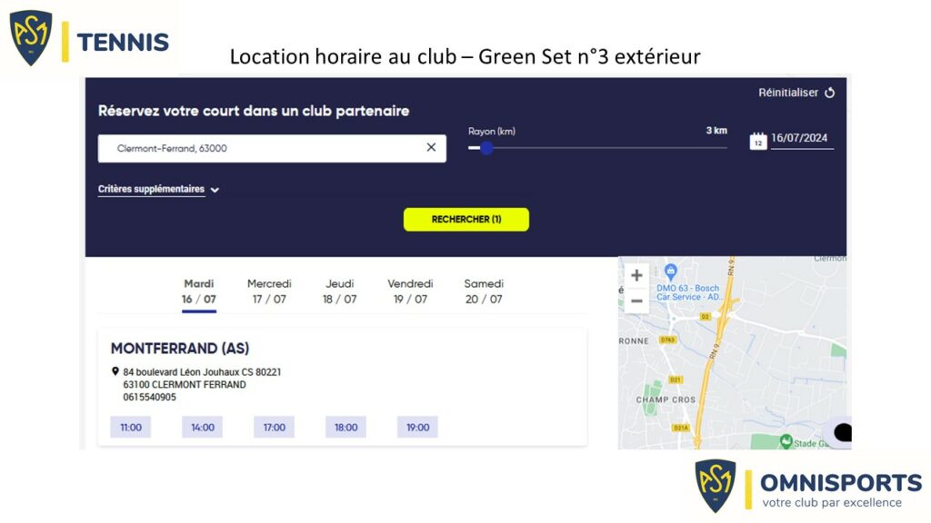 Vous êtes de passage à Clermont-Ferrand ou vous avez envie de jouer ponctuellement, la location horaire est faite pour vous ! Louez le terrain extérieur en Green Set (surface dure) pour taper la balle avec un ami ou de la famille !